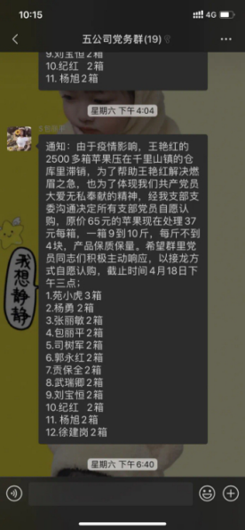 4月18日,烏海廣播電視臺公眾號發(fā)布一條《急急急!2萬多斤評估滯銷,快來幫幫這個烏海姑娘!》信息,我市一位名叫王艷紅的農戶從新疆果園運回近3000箱阿克蘇冰糖心蘋果,受今年新冠肺炎疫情影響,2500多箱蘋果一直壓在千里山鎮(zhèn)的倉庫,隨著天氣轉暖,錯過最佳售賣時機,保鮮庫也存放不了多久,王艷紅焦急萬分,到處找銷路。市熱力有限責任公司第五分公司黨支部書記苑小虎得知這一消息后,第一時間與支部委員商議,最終決定以接龍方式在公司微信群開展自愿認購活動。