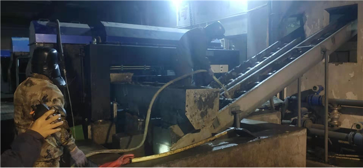 1月5日上午,因設備超負荷運行,污泥處理系統(tǒng)斜螺旋再次發(fā)生斷裂,無法正常使用,為保證生產(chǎn)正常運行,機修段全體人員再次頂著嚴寒,全力搶修,更換新的污泥處理系統(tǒng)斜螺旋,努力保證污泥處理系統(tǒng)安全穩(wěn)定運行。
