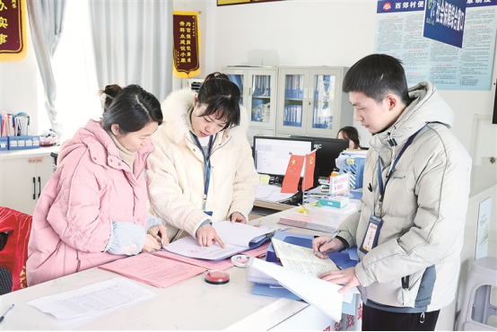 安徽省郎溪縣紀(jì)委監(jiān)委以村級(jí)人、財(cái)、物廉潔風(fēng)險(xiǎn)管控為抓手,嚴(yán)肅查處違規(guī)干預(yù)和插手集體資金、資產(chǎn)和資源的使用、分配、承包、租賃等違反工作紀(jì)律的行為,確保村集體經(jīng)濟(jì)安全規(guī)范運(yùn)行。圖為該縣紀(jì)檢監(jiān)察干部在西郊村查看財(cái)務(wù)資料。唐媛 攝