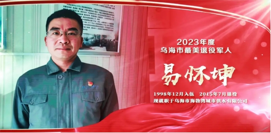 市城投集團(tuán)公司職工韓江濤,市城投集團(tuán)所屬子公司烏海市海勃灣城市供水公司職工易懷坤,烏海市污水處理公司職工魏軍,喜獲“2023年度最美退役軍人”榮譽(yù)稱號(hào)。