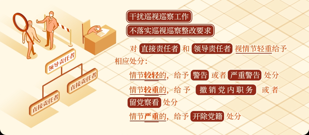《中國共產(chǎn)黨紀律處分條例》規(guī)定,干擾巡視巡察工作或者不落實巡視巡察整改要求,屬于違反政治紀律的行為,對直接責任者和領(lǐng)導責任者,視情節(jié)輕重給予相應(yīng)處分。情節(jié)較輕的,給予警告或者嚴重警告處分;情節(jié)較重的,給予撤銷黨內(nèi)職務(wù)或者留黨察看處分;情節(jié)嚴重的,給予開除黨籍處分。