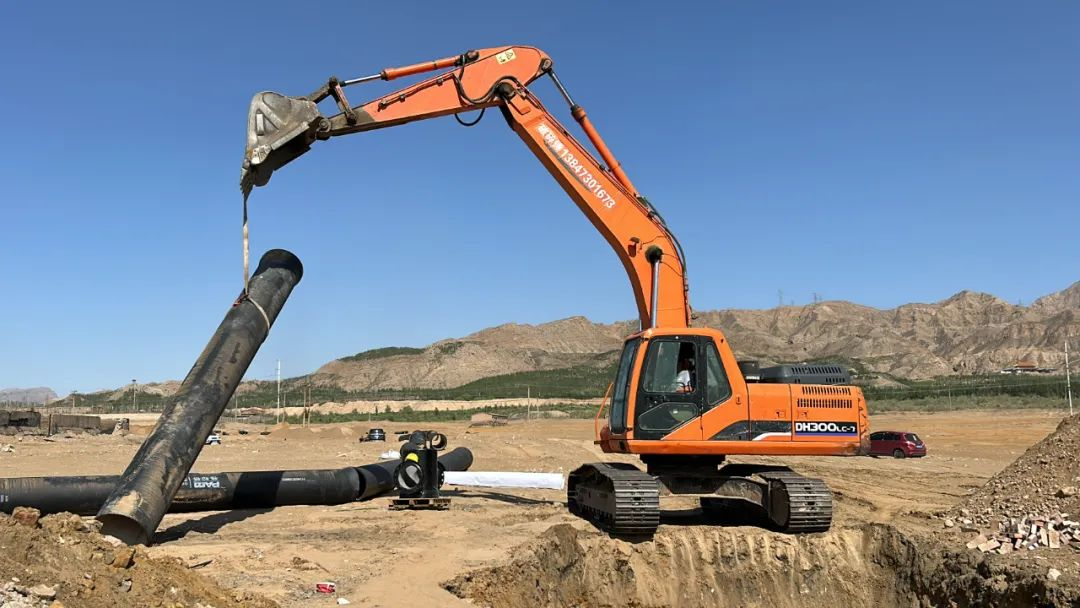 近日,記者在海勃灣區(qū)的南部凈水廠輸水管道項(xiàng)目現(xiàn)場看到,隨著挖掘機(jī)緩緩升起,一根長約6米的給水管被緩慢放進(jìn)坑道。隨后施工