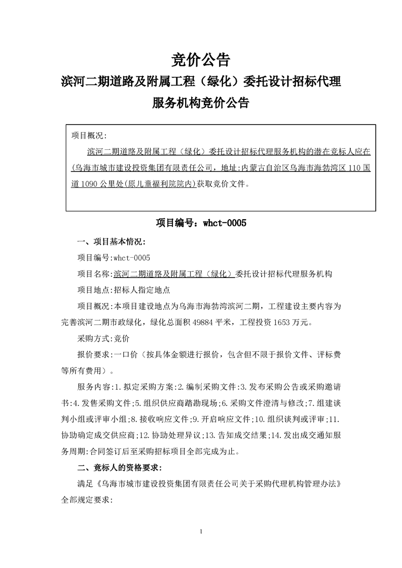 濱河二期道路及附屬工程(綠化)委托設(shè)計(jì)招標(biāo)代理服務(wù)機(jī)構(gòu)競價(jià)公告