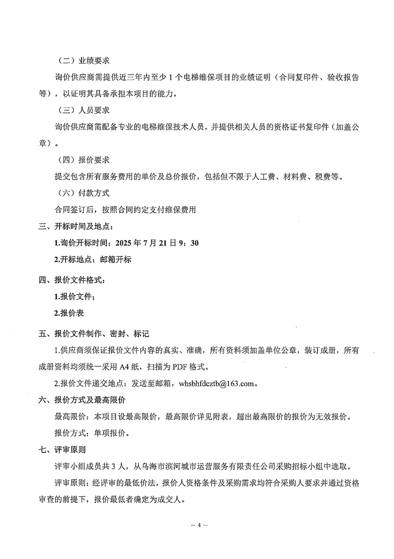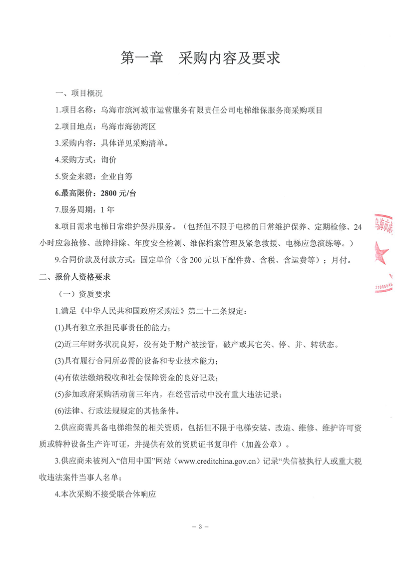 - 2025-11-07烏海市濱河城市運營服務有限責任公司中大型電動掃地機(車)供應項目詢價文件