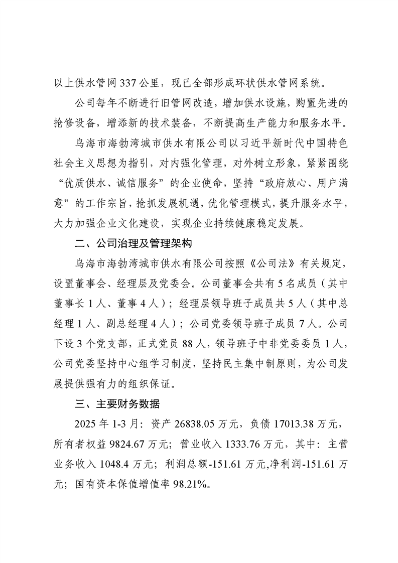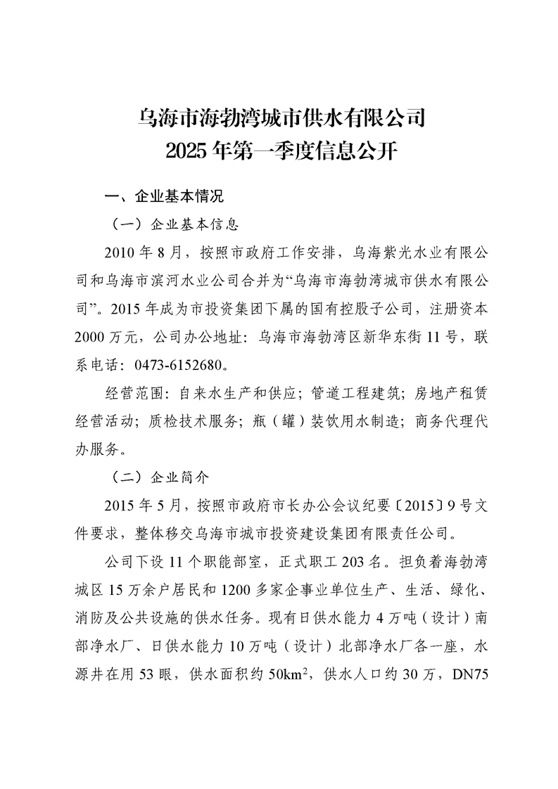 - 2025-10-22烏海市海勃灣城市供水有限公司2025年第三季度信息公開
