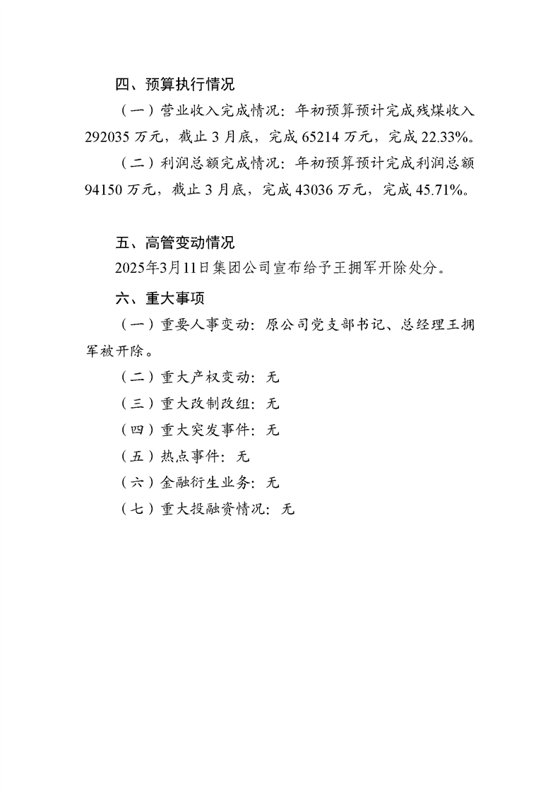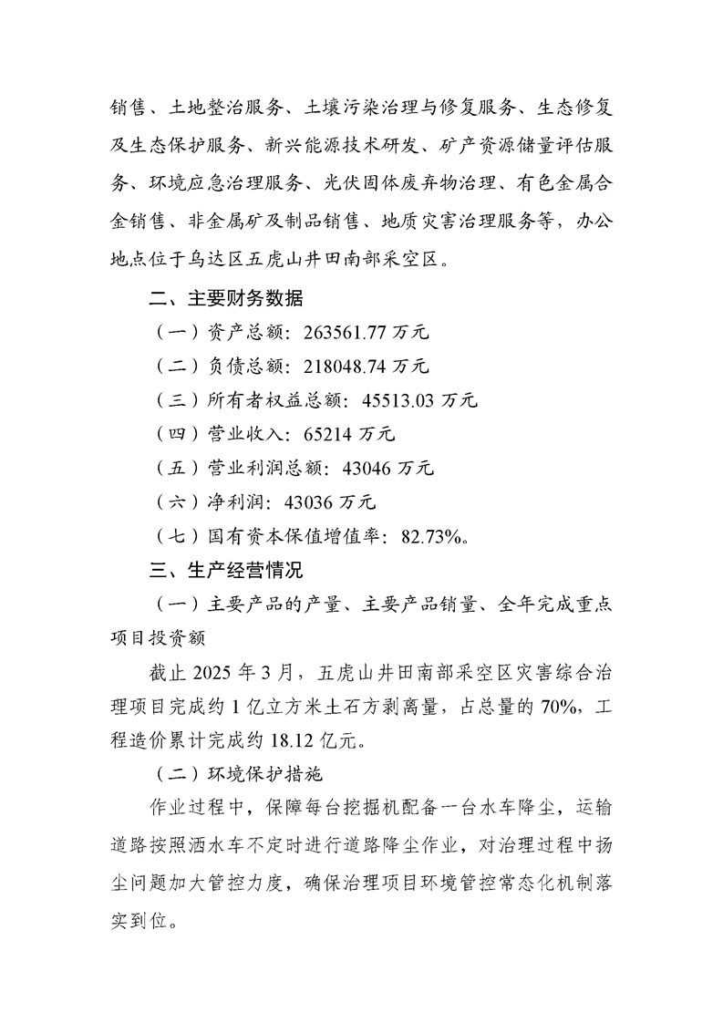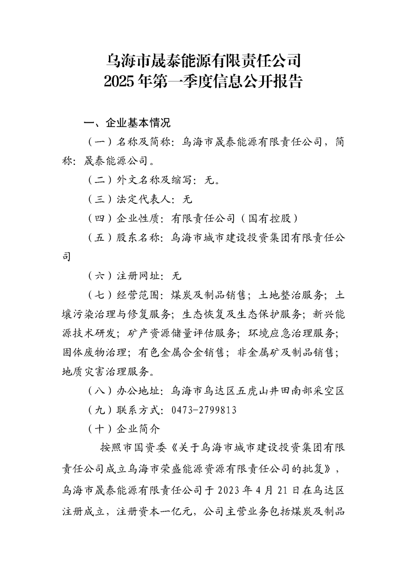 烏海市晟泰能源有限責(zé)任公司2025年第一季度信息公開(kāi)報(bào)告