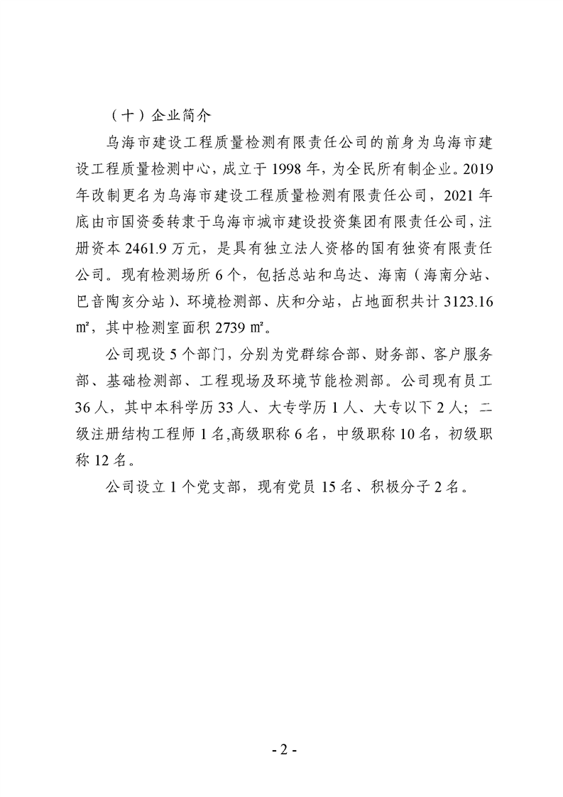- 2025-03-10烏海市建設工程質(zhì)量檢測有限責任公司2024年度信息公開報告