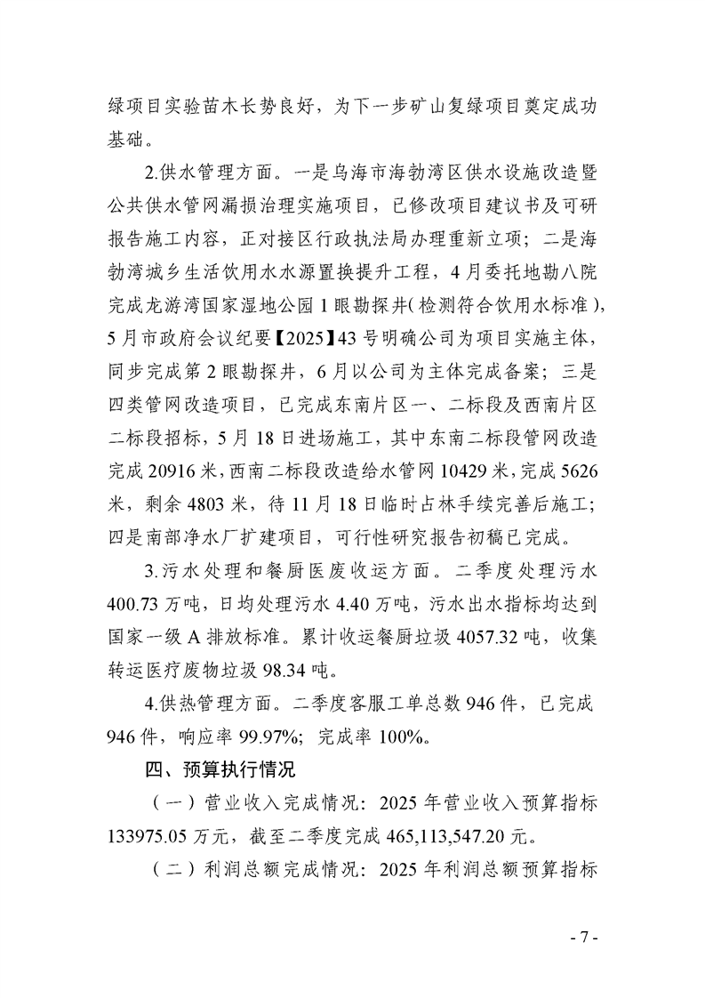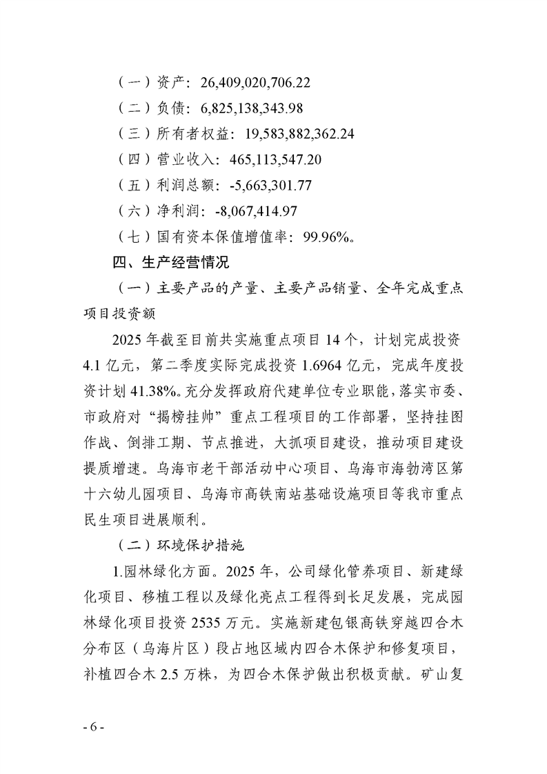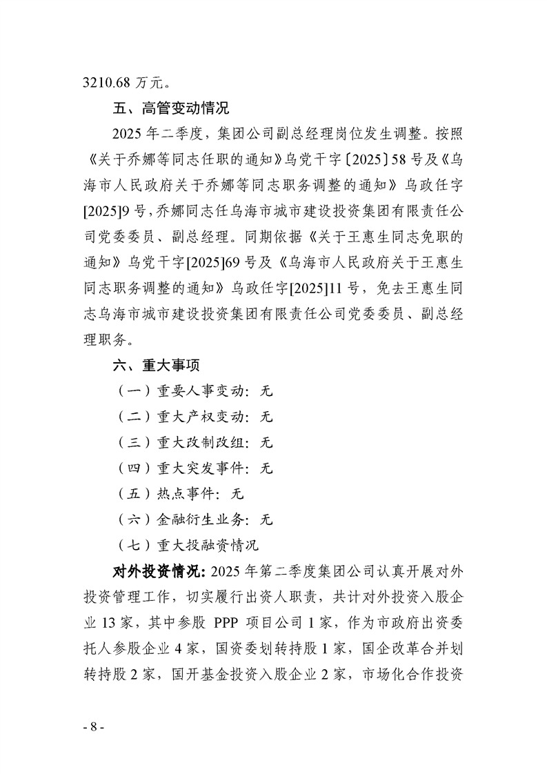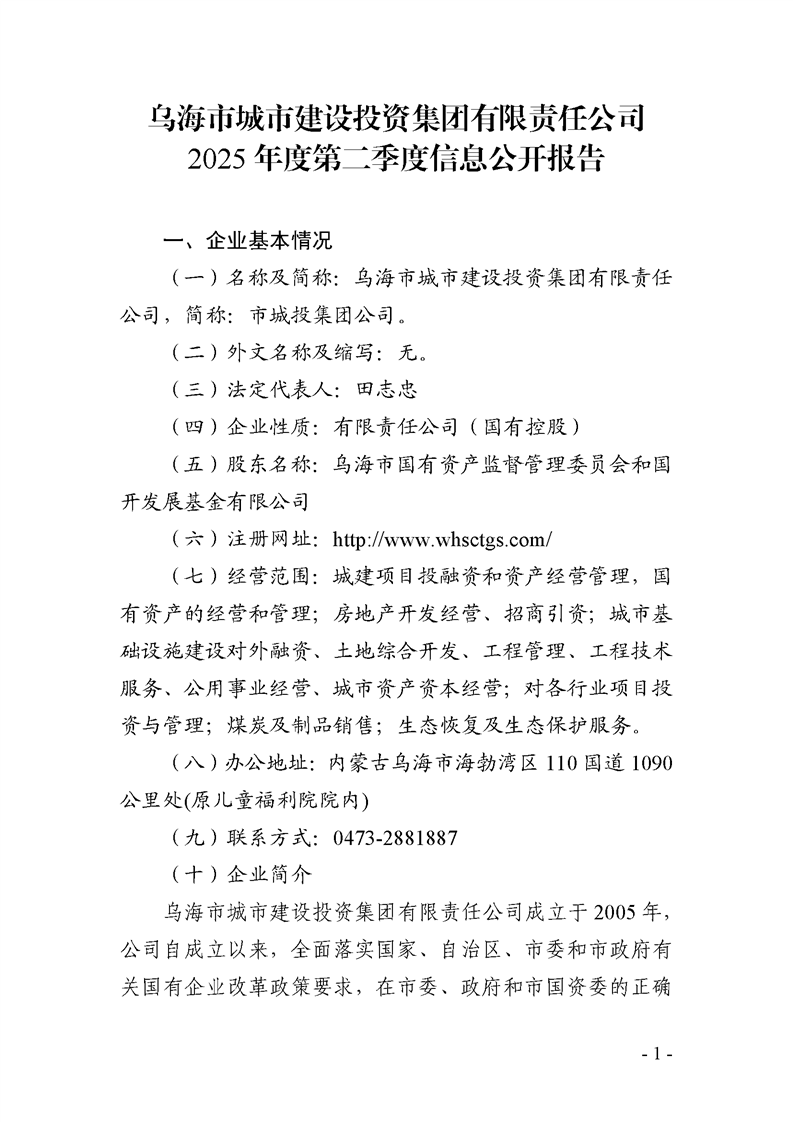 烏海市城市建設(shè)投資集團(tuán)有限責(zé)任公司 2025年度第二季度信息公開(kāi)報(bào)告