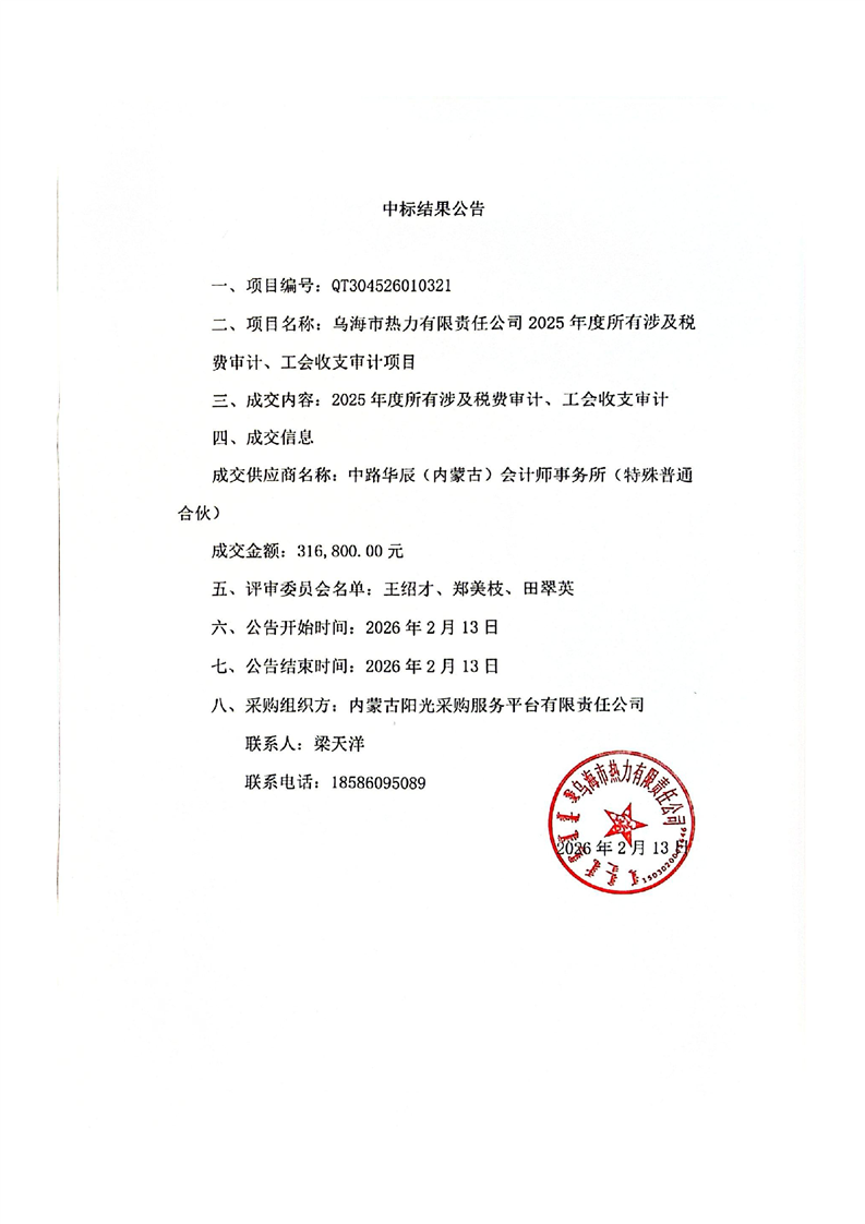 - 2026-02-12烏海市海勃灣城市供水有限公司財務(wù)年終審計服務(wù)采購項目結(jié)果公示