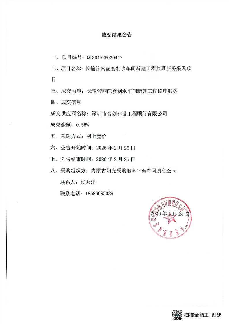 - 2026-04-08長(zhǎng)輸管網(wǎng)配套制水車(chē)間工程(結(jié)果公告)