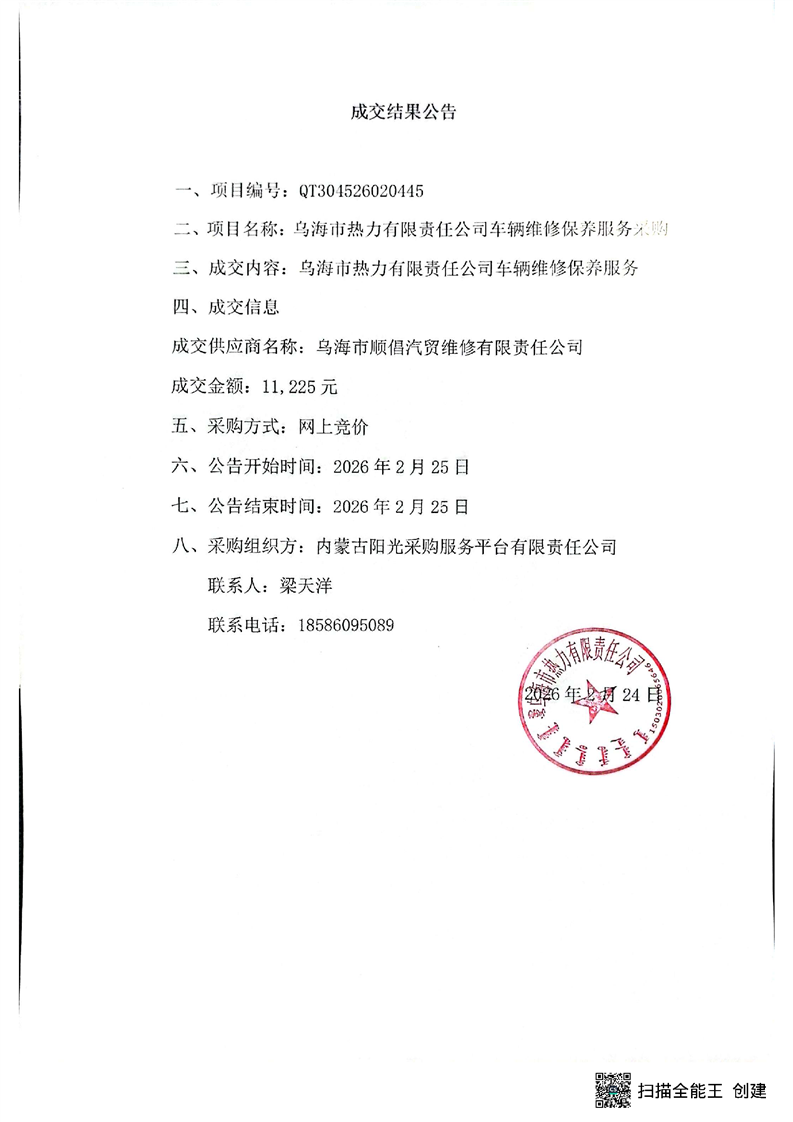 - 2026-04-13烏海市海勃灣城市供水有限公司車輛維修服務(wù)采購項目詢價公告