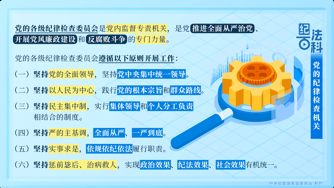 黨的各級紀(jì)律檢查委員會遵循以下原則開展工作: